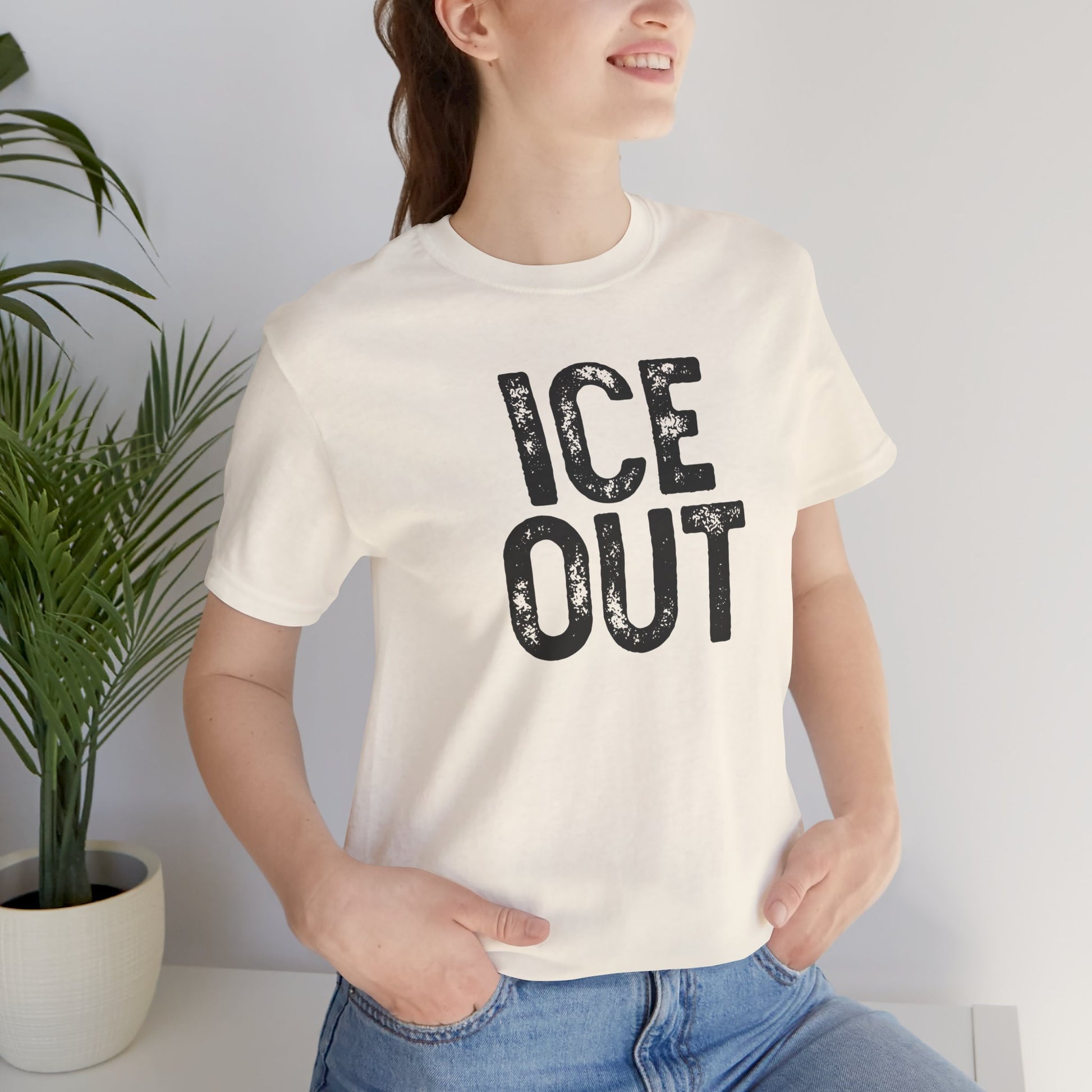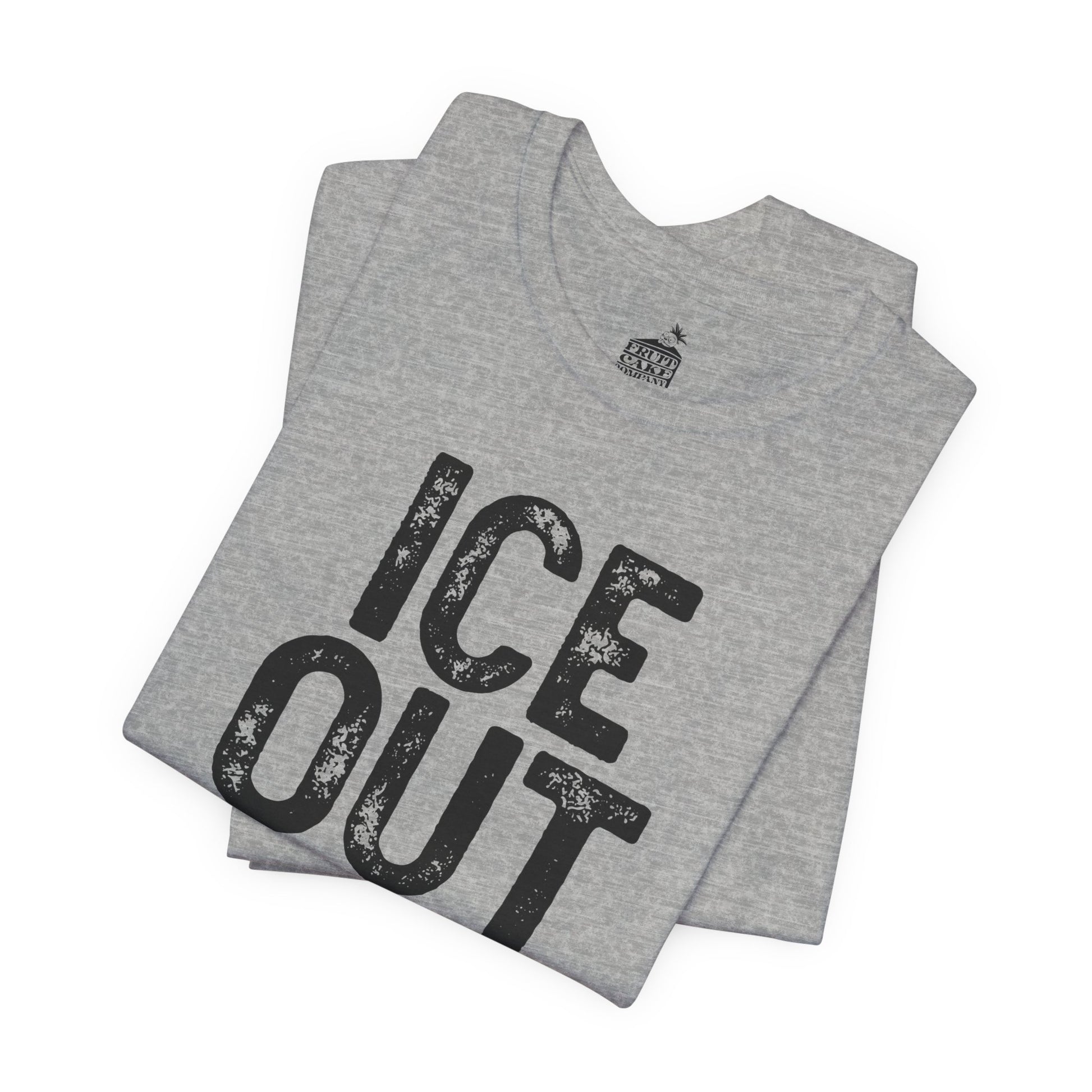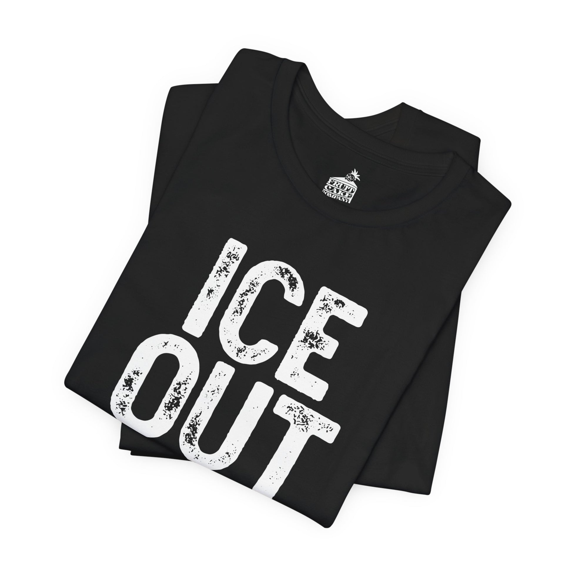 A soft, lightweight tee printed with a bold “ICE OUT.” It sits clean and centered on the chest, the simple graphic speaking with quiet conviction. The cotton feels breathable against the skin and wears easily under a jacket or on its own. This shirt becomes a wearable statement—an everyday piece that holds space for solidarity and remembrance. It’s made to move with you: stitched side seams keep its shape, ribbed collar holds its form, and shoulder tape prevents stretch so the message stays front and center. Thoughtfully sourced and REACH certified, the fabric and construction let you focus on what matters—the cause the design represents—while staying comfortable throughout the day.